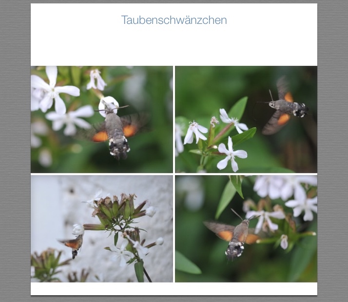 Und pünktlich kurz vor neun Uhr wie jeden Abend, nach dem kann man echt die Uhr stellen, das Taubenschwänzchen im Seifenkraut.