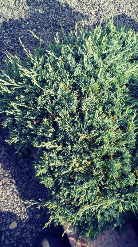 Vermutlich Juniperus horizontalis 'Glauca'.