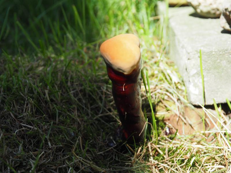 Und besonders stutzig macht mich die Beschreibung von Feminist, dass erst der ´Kopf`erschienen ist und anschließend der ´Fuß` hoch gewachsen ist und dabei Gräser umschlossen hat. Und auf dem Bild erkennt man auch, dass der ´Fuß`, bzw die Masse, die den ´Fuß` bildet, den ´Kopf` von unten her im Nachhinein regelrecht umfließt.