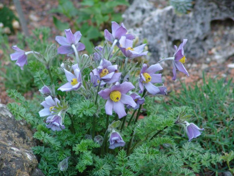 Hast Du dort auch Pulsatillen gesetzt? Wir hatten die Sorte P. turkzaninowii, mit etwas gefransten Blütenblättern. Bringt Farbe ins Beet.