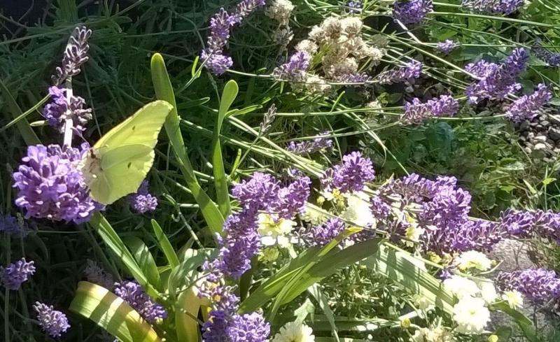 Einer der heute im Lavendel flatternden Zitronenfalter war so freundlich, für ein Foto still zu halten ;)