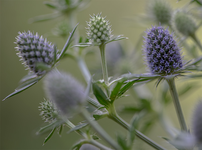 Eryngium planum 'Blue Hobbit', bei einem Spontanbesuch der offenen Tür bei Offenthal in Körbchen gehüpft.