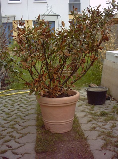 und außerdem konnte ich einfach nicht mitansehen, wie dieses hübsche Ding in den Müll sollte... Das Problem sind seine vielen braunen Blätter. Ich vermute mal, daß er Wintersonne abbekommen hat??? Tot ist er nicht, ich sehe viele neue Knospen/Triebe überall an ihm. Im Internet finde ich zwar allgemeine Infos über "Van Nes" (Größe etc.), aber nicht, was ich wg. der braunen Blätter machen kann bzw. wie (nur die braunen Blätter abzupfen oder Äste bis zum gesunden Grün abschneiden?) und wann (jetzt noch?) ich ihn schneiden soll(te)/kann. Könnt Ihr mir da bitte Tipps geben? Was würdet Ihr machen und welche Erfahrungen habt Ihr generell mit dieser Kirschlorbeer-Sorte gemacht (damit ich ihn auch in Zukunft artgerecht pflegen kann)? Ich würde ihn gerne (vorerst) als Kübelpflanze halten, was muß ich dabei beachten und welcher Standort wäre Euren Erfahrungen nach am besten oder wenigstens noch okay (bei Halbschatten: lieber eher bis oder ab mittags die Sonne)? Vielen Dank im voraus und liebe Grüße, Angi :)P.S: Ich habe auch 2 Bilder vom Van Nes, aber die haben jew. über 700 KB, und ich weiß leider nicht, wie ich die auf max. 80 KB bekomme