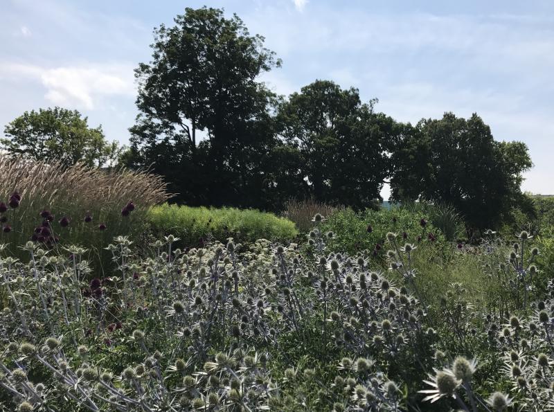 Hier das Piet Oudolf Beet im Eingangsbereich... Mengen an Eryngium