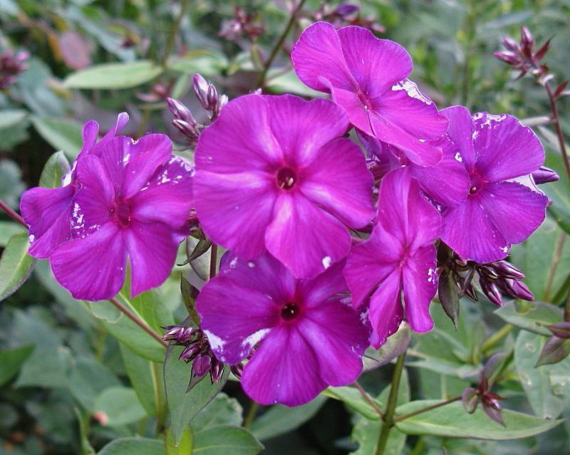 Das ist 'Iris'. Die dunklen Phloxe sehen abends besonders schön aus! Mit 'Iris' ist es aber in diesem Jahr nicht leicht: Stängelwelke vor der Blüte, Stängelwelke während der Blüte, ein Stängel übrig ... :-X