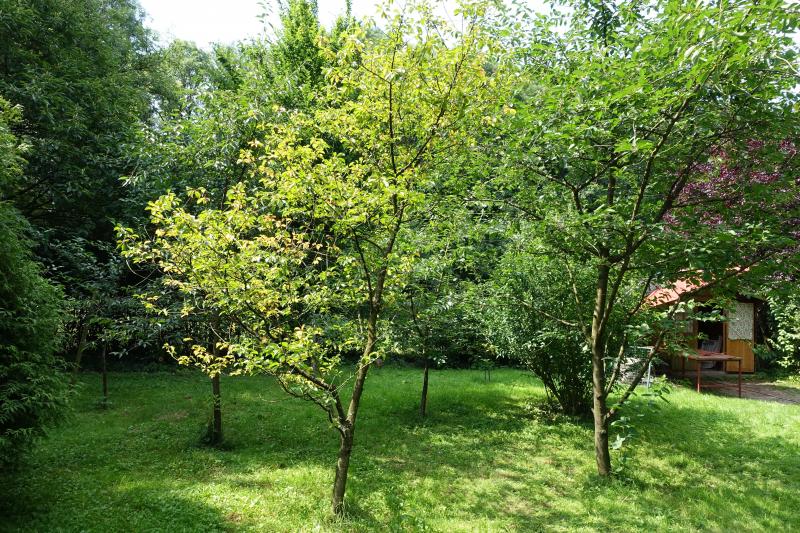 Das nächste bewohnte Haus ist rund 300 Meter entfernt. Rund um den Garten ist eine Pferdeweide, die unter anderem den Garten vom Wald trennt, und ein verwildertes Grundstück.