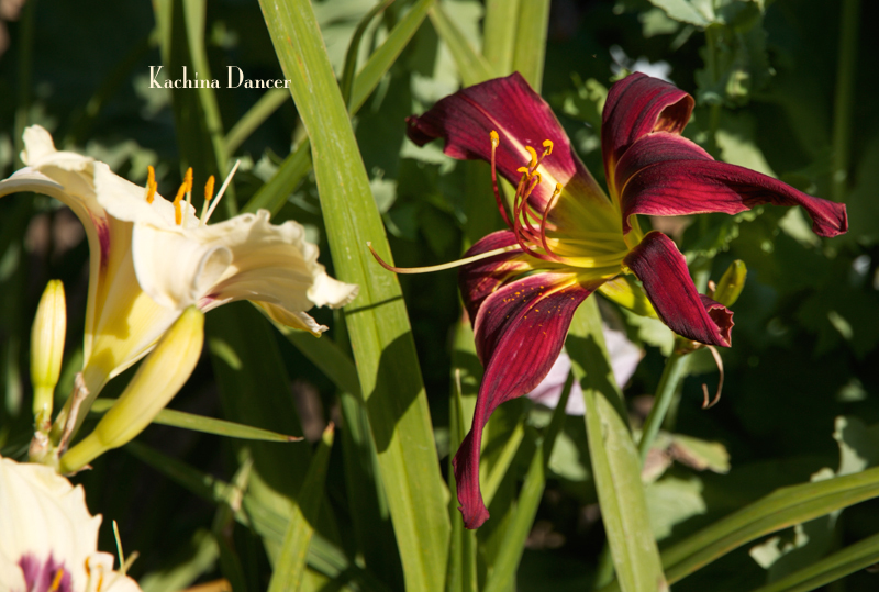 Angeblich nur 35% Double - hier kann sie mehr und die Farbe ist um einiges dunkler als die vom ohnehin schon supercoolen Voodoo Dancer. Abgesehen davon hat sie jetzt noch viele Knospen, wo die anderen 'near blacks' schon ganz oder fast verblüht sind (nur zwei Fächerlein, aber die geben Gas 8)).