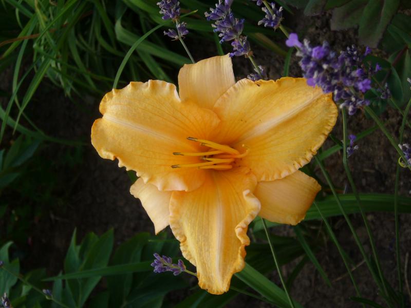 Hier blüht derzeit beispielsweise 'Ruffled Apricot', sehr große Blüten, die leuchtet wirklich weit.