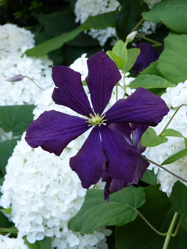 'Warszawa Nike' hat sich dieses Jahr eigene Wege gesucht und hat die Hortensien vereinnahmt.