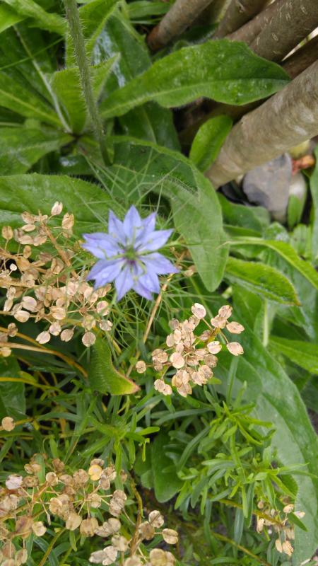 Das ist eine Nigella, ich denke, Nigella damascena, die Jungfer im Grünen.