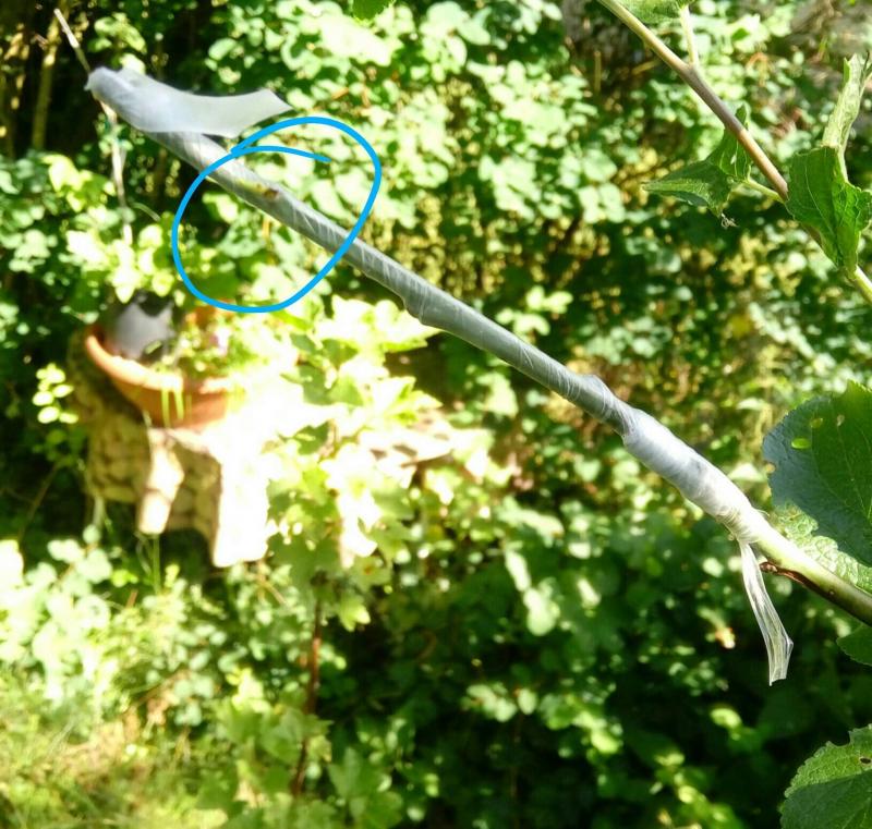 Veredelt am 02.07.17 durch Spaltpropfen. Diesmal hatte ich sie nach Wild Obst, mit Parafim umwickelt.