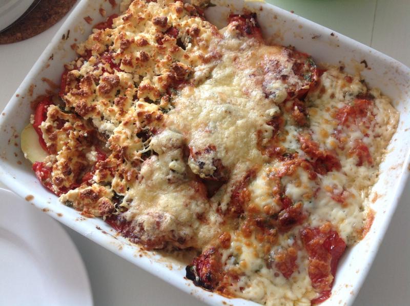 Und wir gerade zucchiniauberginentomatenauflauf. Dazu gabs Nudeln und rucolasalat.