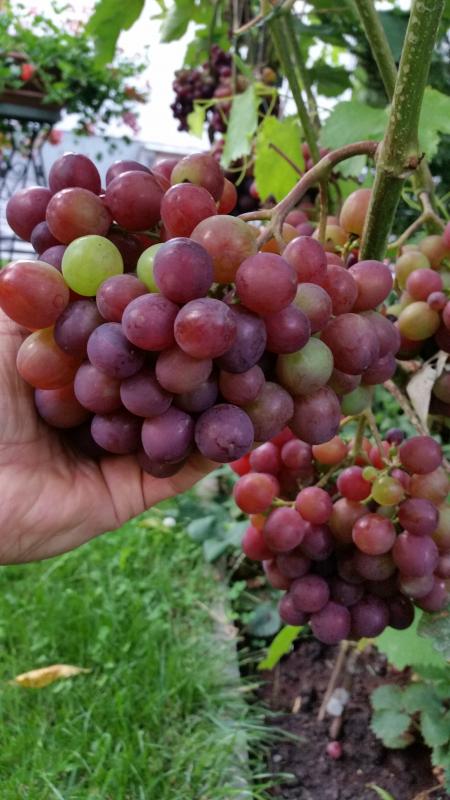 Hält sich in Grenzen. Für mich ist das ein Wunder. Geplazt sind nur paar Beeren von Kadrianka die welche waren nicht im Beutel. Der Jakob hat wieder recht gehabt. Vor paar Jahren nach so viel Regen sind mir viele Sorten geplazt am meisten Phönix, warum? Ich wollte Weinbau Methode durchführen und entspietzte sie nach 5, 6 Blatt oder Tafeltrauben nach 10 Blätter. Damals sind 50% alle Beeren geplazt. Was für Arbeit war das die geplatzte weg zu schneiden. Sogar der Karmakod welchen ist empfindlich bis jetzt kaum gelitten hat. Die Rebe einscheint ist auch mit Trieben überlastet, hat nur 4 kleine Trauben. Jemand von euch hat geschrieben dass Organzabeutel sind nicht gut, ich bin mit sie sehr zufrieden. Regen bleibt draußen, Trauben blenden trocken und vielleicht deswegen platzen nicht. Die Starren sind dieses Jahr schlimmer als der Regen. Die beschädigte Beeren werden jetzt durch Wespen zu Ende kaputt gemacht am Phönix. Nach zwei Wochen tue ich Zucker und Säure messen. Wenn erreichen nicht ganz vollen Reife werden zu Wein gemacht.