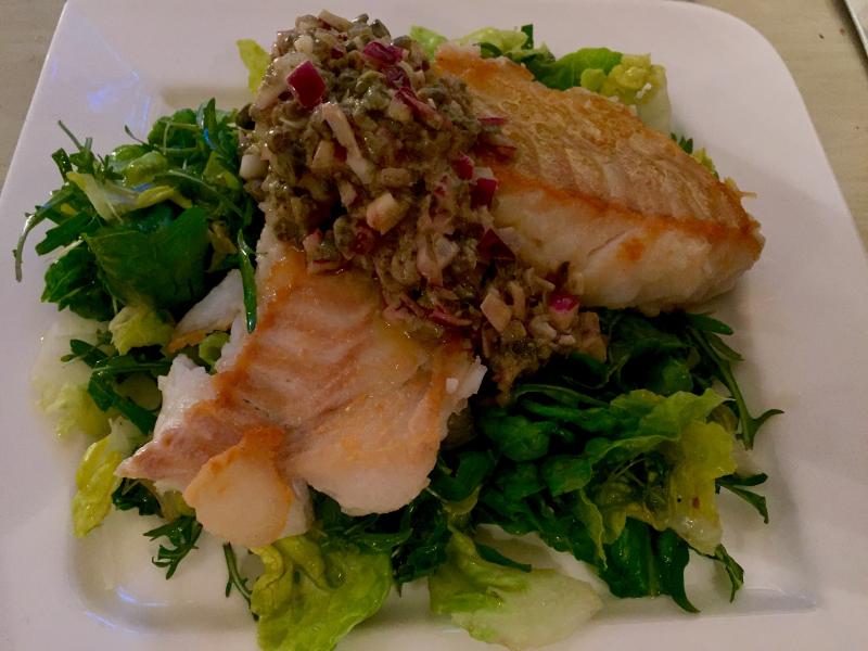 Seelachs, Gartenkartoffeln und grünen Salat :D