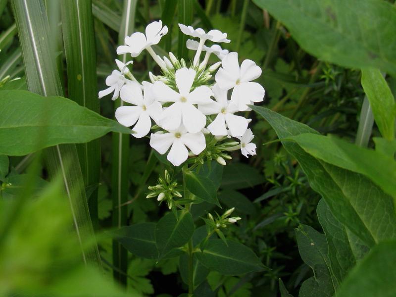 Zur Staudenbörse im Frühjahr brachte pumpot einen Phlox 'David' für Inken mit. Diese war aber leider nicht da, deshalb blüht das Teil jetzt bei mir sehr nett ;) Den Hintergrund kann nur Inken kennen, ich weiß nix, zeige aber mal das Foto. Phlox ist reinweiß, die Blätter eher breit. Absolut gesund und schön, auch nach dem Monsterregen.