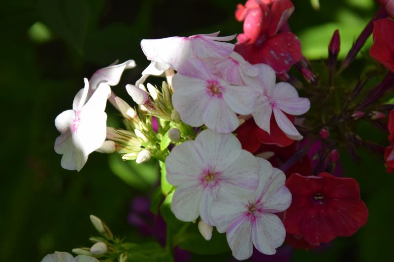 Wenn man auf dem Foto genau hinschaut, ist er nicht ganz reinweiß. Knospen und auch der Tubus sind leicht rosa getönt. Die Einzelblüten sind 2,5 bis 3 cm groß und die ganze Pflanze wird ca 1 Meter hoch. Die Form der Einzelblüten erinnert ein wenig an die 'Davids' aber das Laub ist wesentlich kleiner und auch anders geformt. Gibt es vielleicht eine alte gelaufige Sorte, auf die diese Beschreibung passt? Ich wüsste jedoch nicht, woher ich diesen Phlox haben sollte.
