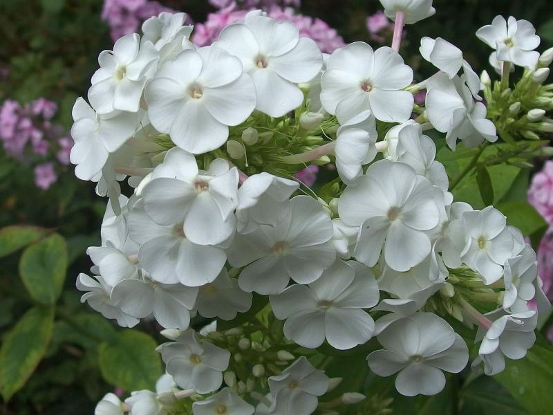 Damit bin ich mehr denn je davon überzeugt, dass der schmalblättrige Typ, der eben nicht "reinweiß" blüht, der amerikanische Phlox paniculata 'David' sein muss. Dafür sprechen auch die Wuchsmerkmale, die auf amerikanischen Webseiten auch diesen straff aufrechten Habitus mit sehr engen Internodien der Triebe sowie die langestreckten Blütenstände, die diesen Phlox von dem vermeintlichen "Phlox amplifolia" gleichen Namens unterscheiden.