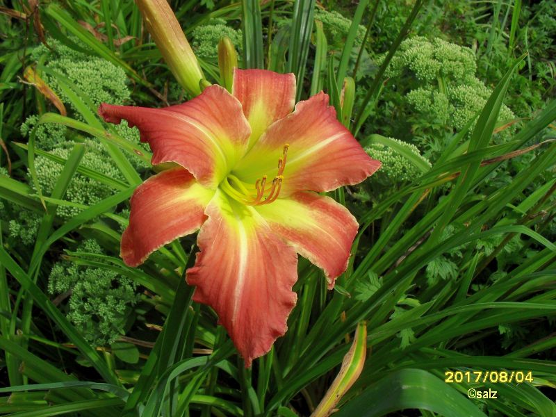 Hochblüte Mitte Juli. Aber, ehrlich gesagt, bin ich ganz froh, daß sie mit den anderen blüht. Um Spätblüher ist es schade, die werden kaum noch angesehen im Hemsgarten. Die könnten ansonsten nur in den Rosenbeeten stehen und da habe ich mir vorgenommen, es weniger pflegeintensiv zu gestalten.