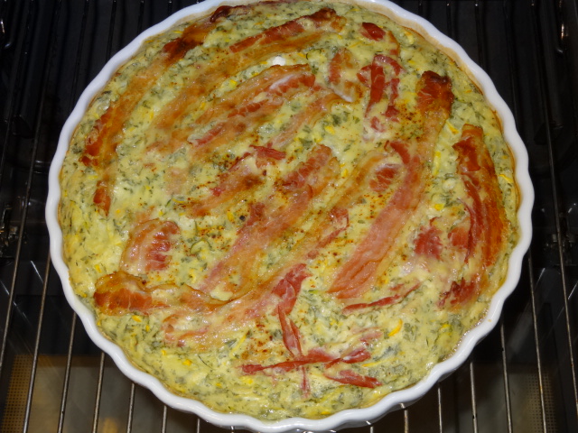 Kartoffelkuchen, u.a. mit geraspelten Zucchini, Ziegenfrischkäse