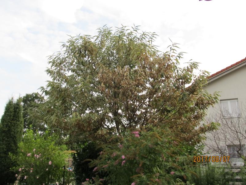 Und hier jetzt das Ganze aus einem anderen Blickwinkel - ein großer Teil der Krone zeigt welkes Laub: