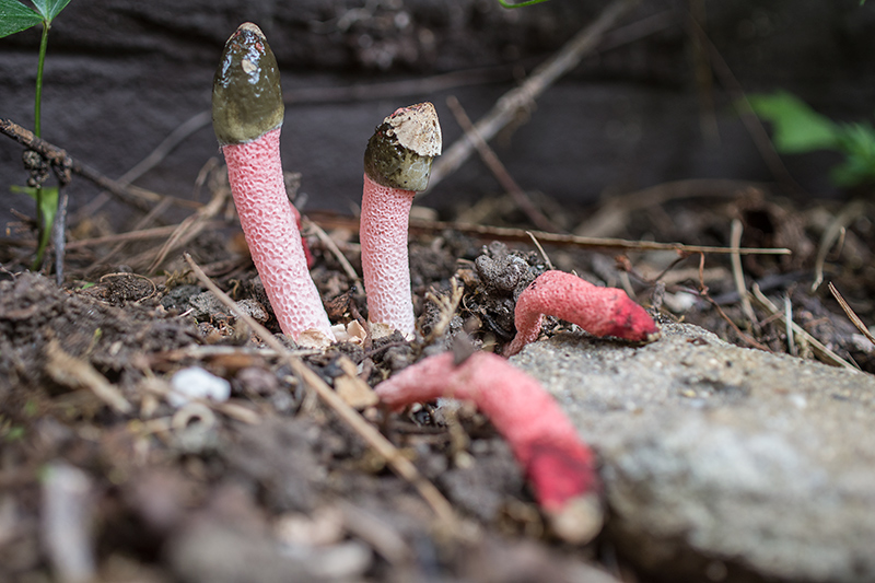 Mein Kitschpilz sieht heute anders aus, es ist wohl nicht die Himbeerote Hundsr ute, sondern Mutinus elegans, die Vornehme Hundsr ute, was ja doch viel schöner klingt ;) Die Exemplare von gestern sind schwer abgeschlafft ;D