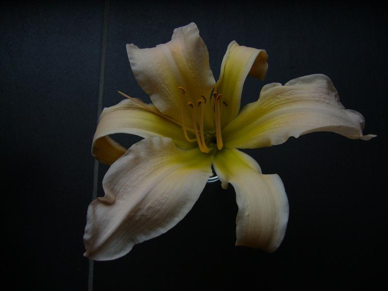 und hier der sämling von daylily, konnte ihn leider nur drinnen fotografieren, deswegen stimmt die farbe nicht, die schaut auf dem foto blassapricot aus, ist jedoch deutlich mehr rosa bei normalem tageslicht