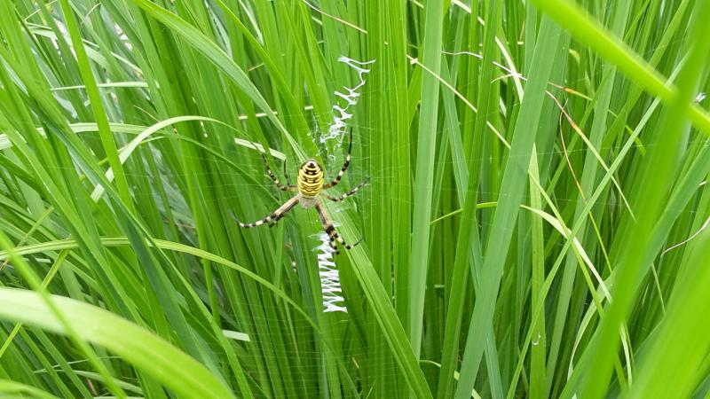Heute habe ich hier ebenfalls ein beachtliches Exemplar von einer Wespenspinne gefunden: