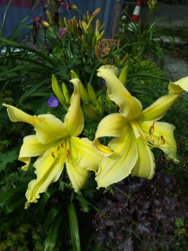 Bei mir haben die Taglilien bei dem nassen Wetter dann irgendwann geschwächelt. Da hat einfach die Sonne gefehlt - nun habe ich Schneckeninvasion... es ist wirklich kein gutes Jahr. Die einzige, die noch etwas blüht, ist eine einfache dunkelrote Namenlose.