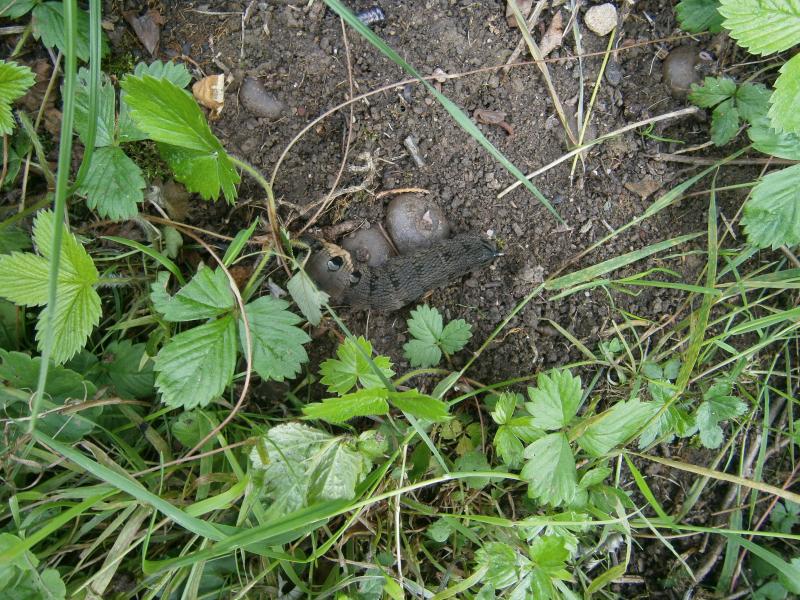 In der Brennnesselwildnis rund um die Kürbisse ist es ein schwarzes Fressgeschwader unterwegs.   :D