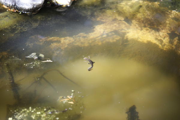 Ein Bild hab ich auch mitgebracht - nix besonderes und ich meine, da hatte ich das 55-250 mm drauf: Ein Molch aus dem Frühjahr, der sich an die Wasseroberfläche kämpft.