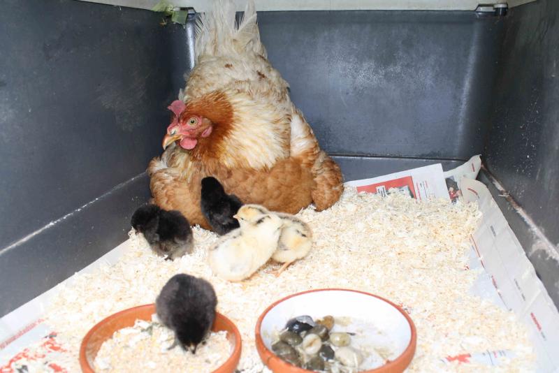 Mit dem Glucken kam überraschend. Die Hundetransportbox war sauber als die Glucke einzog.
