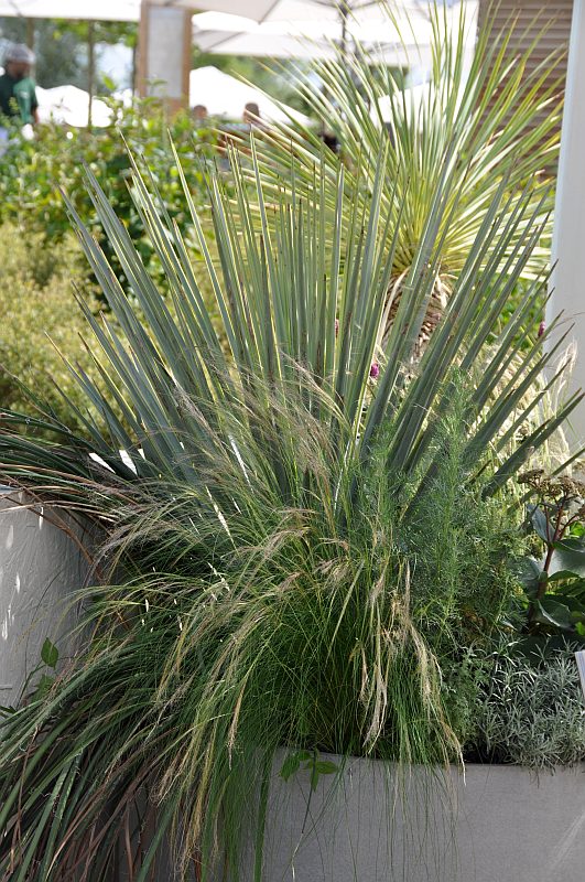 Sehr schöne Staudenbeete gab es trotz der letzten Tage Dauerregen zu sehen. Äußerst spärlich, zu spärlich, fand ich allerdings die Beschilderung der Pflanzen. Für Nullachtfünfzehn-Garteninteressierte, die sich evtl. die ein-oder andere Staude für Garten oder Grabbepflanzung in einer Staudengärtnerei nachkaufen würden und somit auch vermehrt Umsatz in die regionalen Gärtnereien bringen könnten, eine leider verschenkte Chance. Das mit der zu spärlichen Benamsung hab ich unterwegs von Leuten übrigens mehrfach! gehört.