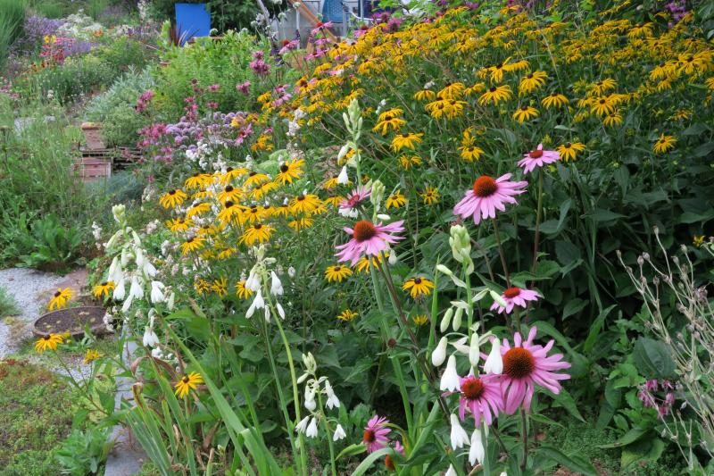 die Rudbeckia und Echinacea haben sich ihren Platz selbst gesucht und ich lass sie gewähren...
