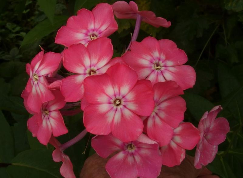 Leider ist dieser Sämling schon vom schlechten Wetter gezeichnet. Er hat aber eine Besonderheit, weswegen ich ihn trotzdem zeige. Wir alle kennen das Phänomen des "auslaufenden Auges" bei weißen Phloxen, bspw. 'Kirmesländler'. Bei diesem großblütigen, warmrosa Phlox tritt dieses Phänomen auch auf. Es ist schade, dass ich dieses Jahr aufgrund des Wetters wohl keine Gelegenheit mehr bekomme, seine volle Schönheit zu fotografieren.