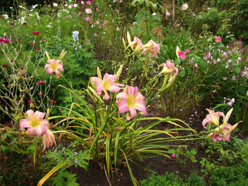 Probleme macht bei den noch oder wieder blühenden Hemerocallis das Laub.Hier sieht es an allen Stauden sehr ramponiert aus.