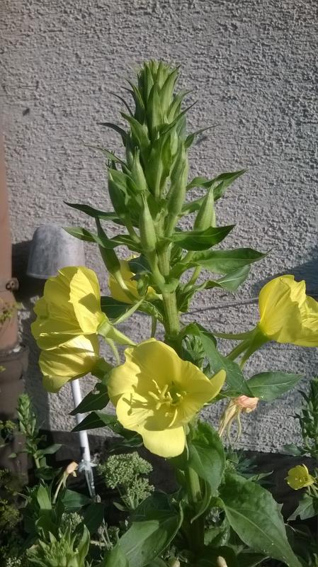 Eine Nachtkerze sicherlich, aber welche? Erst heuer im Frühsommer sichtbar, hat sie sich rasant entwickelt :D Die Blüten haben ca. 2€-Stück-Durchmesser, duften gut und erfreuen die Nachtfalter :D