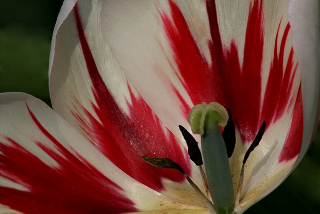 Diese Tulpe könnte fast als Franken-Tulpe durchgehen mit ihren roten-weißen Zacken.(Entblättert hat sie der Wind, das war nicht meine Gier nach einem Motiv....