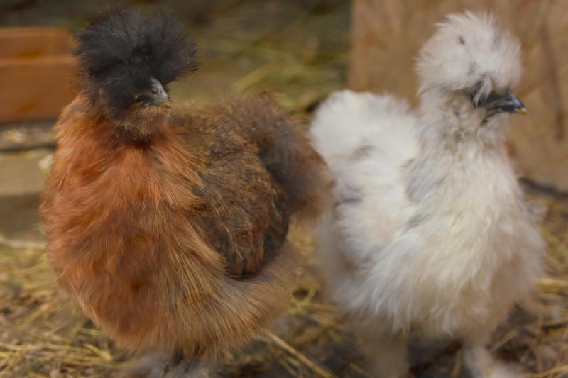 Es sind Seidenhühner - bzw. in diesem Fall zwei Hähne. Das weiße sind die Federn, die einzigen ;)