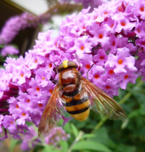 Jetzt wollte ich gerade fragen, welches große Insekt mir hier vor die Linse gekommen ist, aber es scheint das gleiche zu sein, das in #512-515 schon kürzlich bestimmt wurde (Hornissenschwebfliege). Beeindruckendes Geschöpf! :D