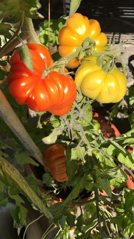 7 Kübel, 20-40 Liter, stehen hier mit je einer Sorte. Bei der AnanasTomate sind es 11(die erste und schwerste hatte 399g), beim Ochsenherz ca 20 und bei der San Marzano 'Corianne' ca 30 Früchte. Der Geschmack ist hervorragend.
