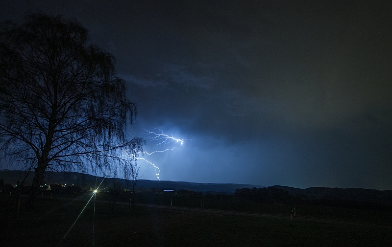 Erste Blitze zucken über Bad lauterberg in der Ferne.