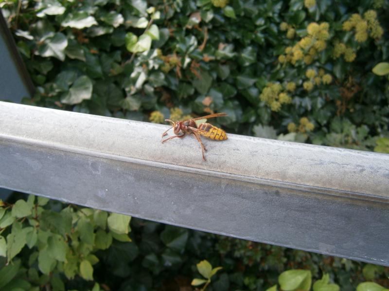 Langsam schwächeln die Hornissen, sie kommen täglich zu mir zu Besuch, da der Efeu blüht.