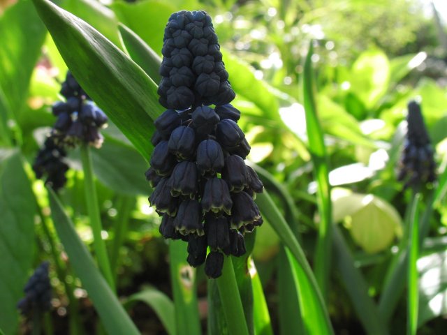 Muscari grandiflorum ist leider schon etwas verblüht, deswegen sieht man den hübsch kontrastierend-weißen Mund der dunkelblauen Blüten nicht mehr so gut.