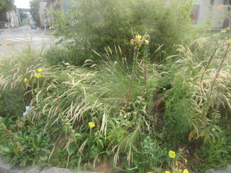 Das entspricht dann vermutlich auch auf Dauer eher dem Bodenanspruch, das Gras breitet sich überall um den Kreisverkehr drumrum aus. Diese Pflanzen sahen und sehen besonders mit frischen Blüten sehr schön aus, solche Inselsituationen im fast wahrsten Wortsinne faszinieren mich eh.