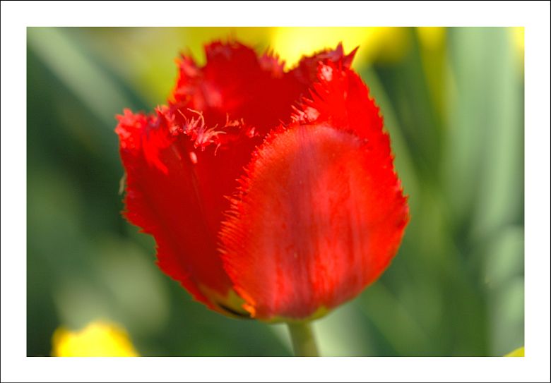 Diese Tulpe könnte fast als Franken-Tulpe durchgehen mit ihren roten-weißen Zacken.(Entblättert hat sie der Wind, das war nicht meine Gier nach einem Motiv....