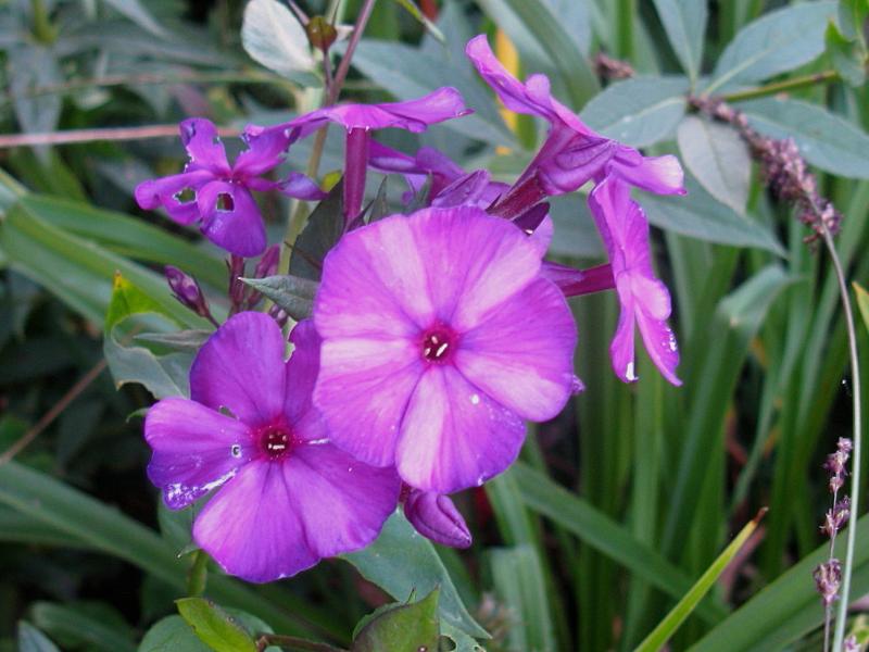 Auch die Farbe dieses Sämlings lässt sich sehr schwer fotografieren - und wirklich gut getroffen habe ich sie nicht, - trotz vieler Versuche -; irgendwie entzieht sich die Farbe der Technik des Fotoapparates. Der Phlox hat ein tiefes, dunkles, glühendes Rot, genauso dunkel wie das Violett von 'Düsterlohe', am ehesten damit zu vergleichen, wenn man ein Glas guten Rotweines vor das Licht des Kaminfeuers hält und hindurchsieht. Auf jeden Fall werde ich ihn behalten und mit ihm im Staudenbeet einen schönen Farbakzent setzen.![]()