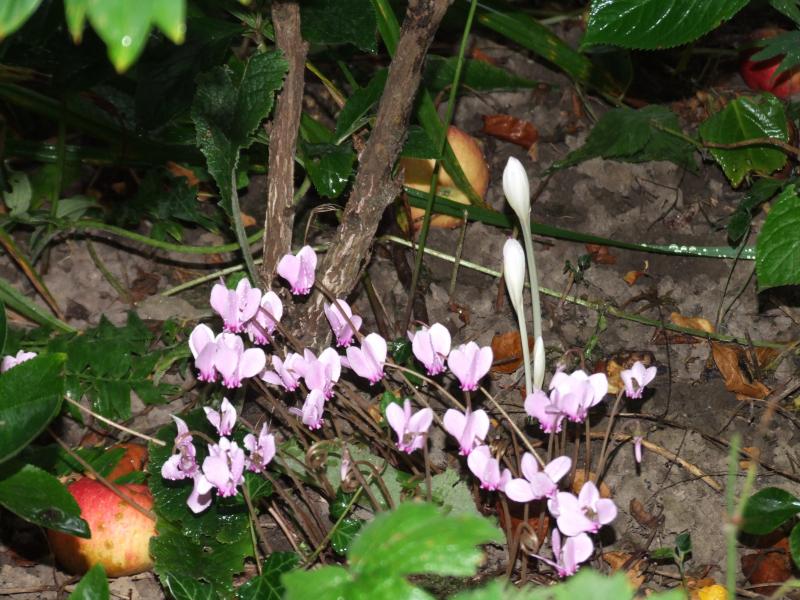 Auch diese ´Innocence´standen vor 2 Jahren noch einen Meter weiter nach links und vorne. Hinter den Cyclamen hederifolium sehen sie jetzt aber auch schön aus.
