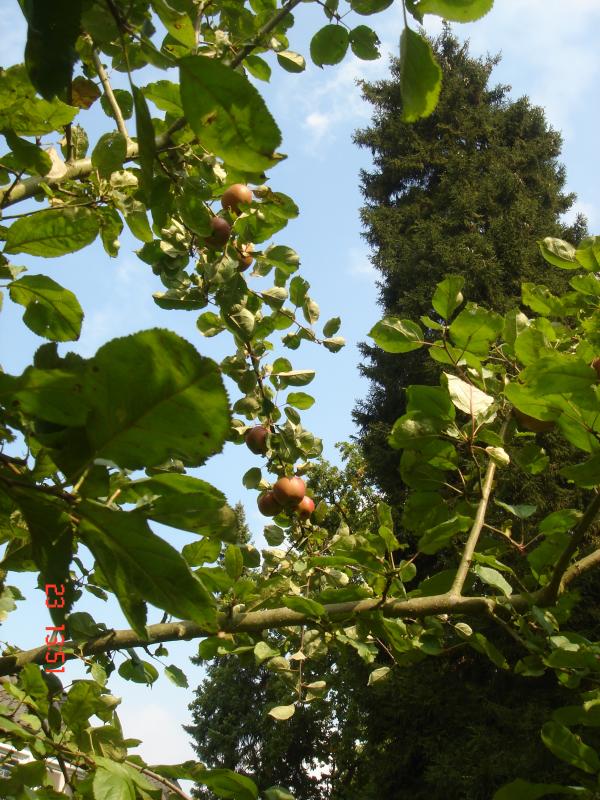 Das heißt, dass alles, worauf ich ein Jahr lang hin gearbeitet habe, alles Düngen, Harken, Jäten, Mulchen, Schneiden, x-maliges Spritzen (Granulosevirus gegen Apfelwickler) umsomst war - wieder einmal!
