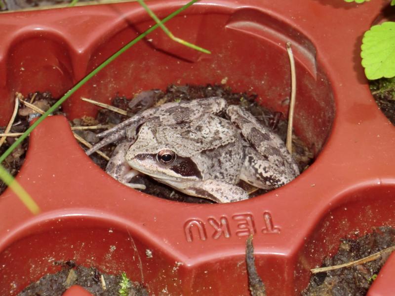 Dass ein paar Frösche auf der Terese wohnen, war mir bekannt. Wieviele es letztlich sind, hat mich heute beim Abräumen der Hostakübel überrascht. Und was für dicke Dinger! :o