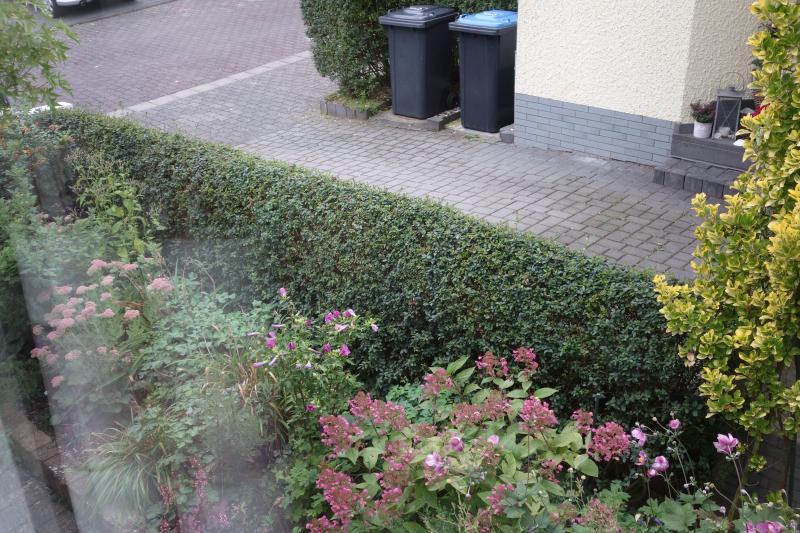 An der Grenze zu Nachbars Einfahrt/Parkplatz steht derzeit eine Ligusterhecke, die eigentlich inzwischen sehr schön ist.